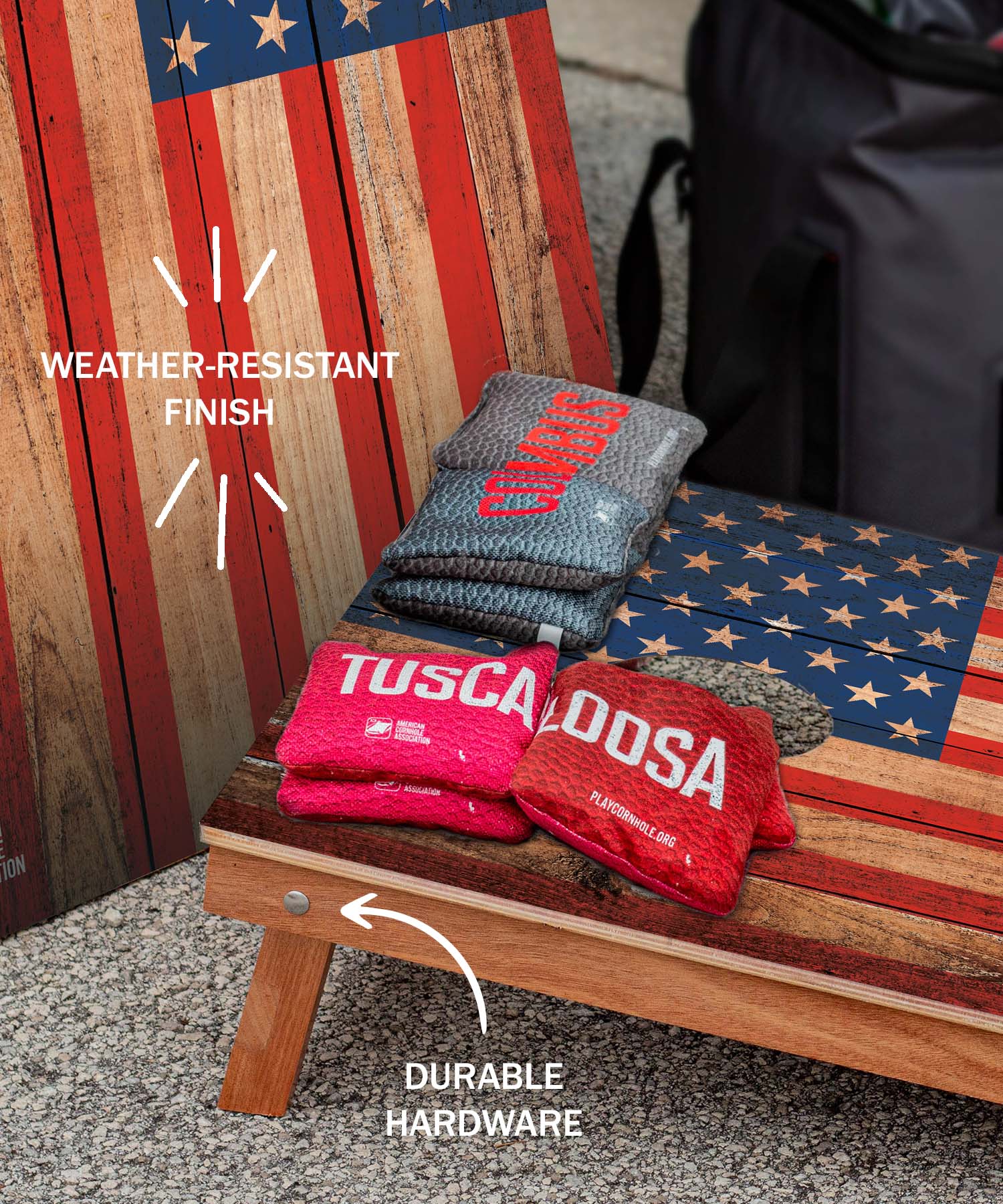 - All cornhole bags and accessories sold separately