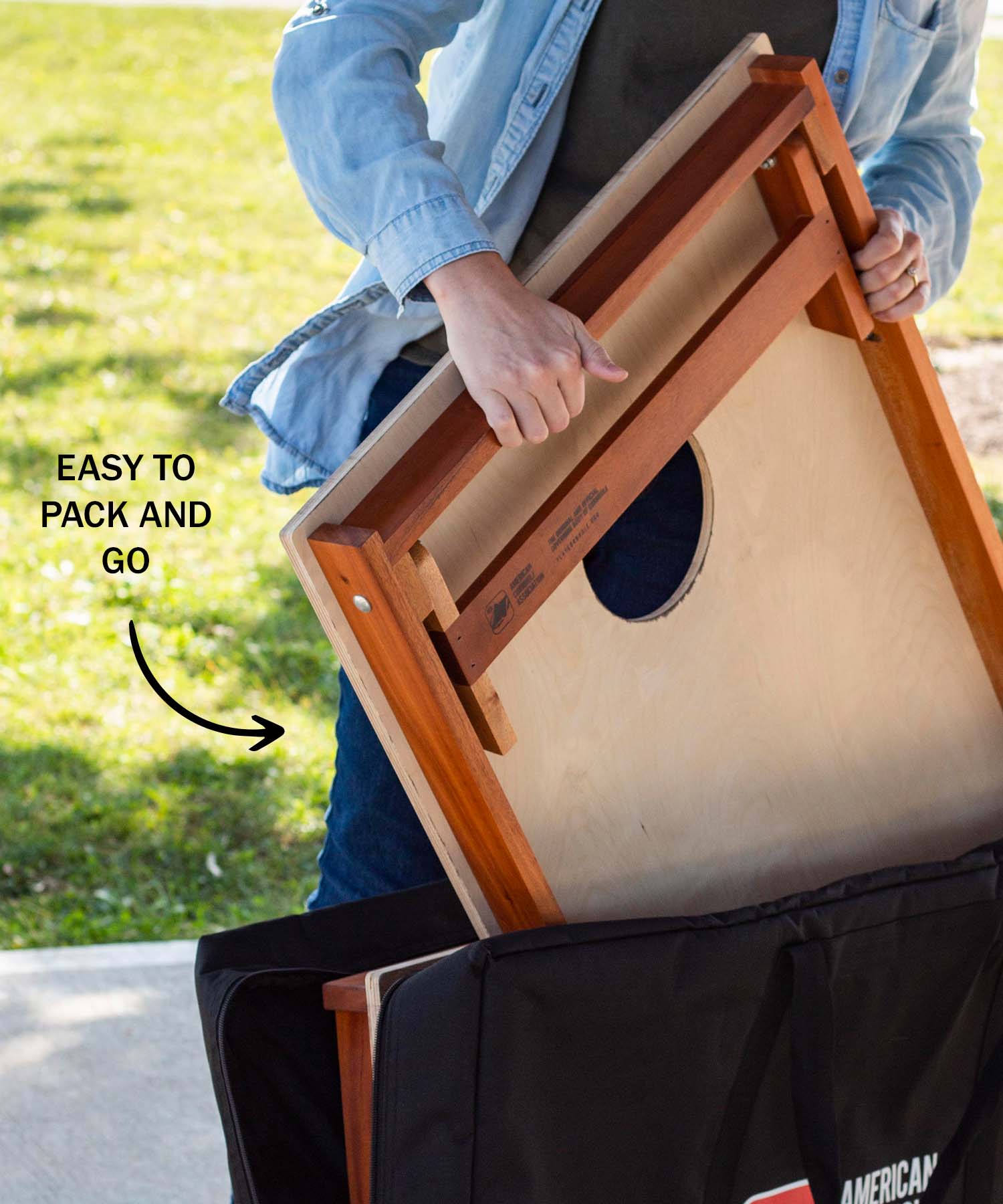 Backyard 2300 Cornhole Boards are great for beginners and people who don’t want to carry around a giant set of boards. Keep the same ACA quality build and materials, but add the back-saver perks. And unlike other boards, they only occupy half the space when you’re ready to load up or store away.